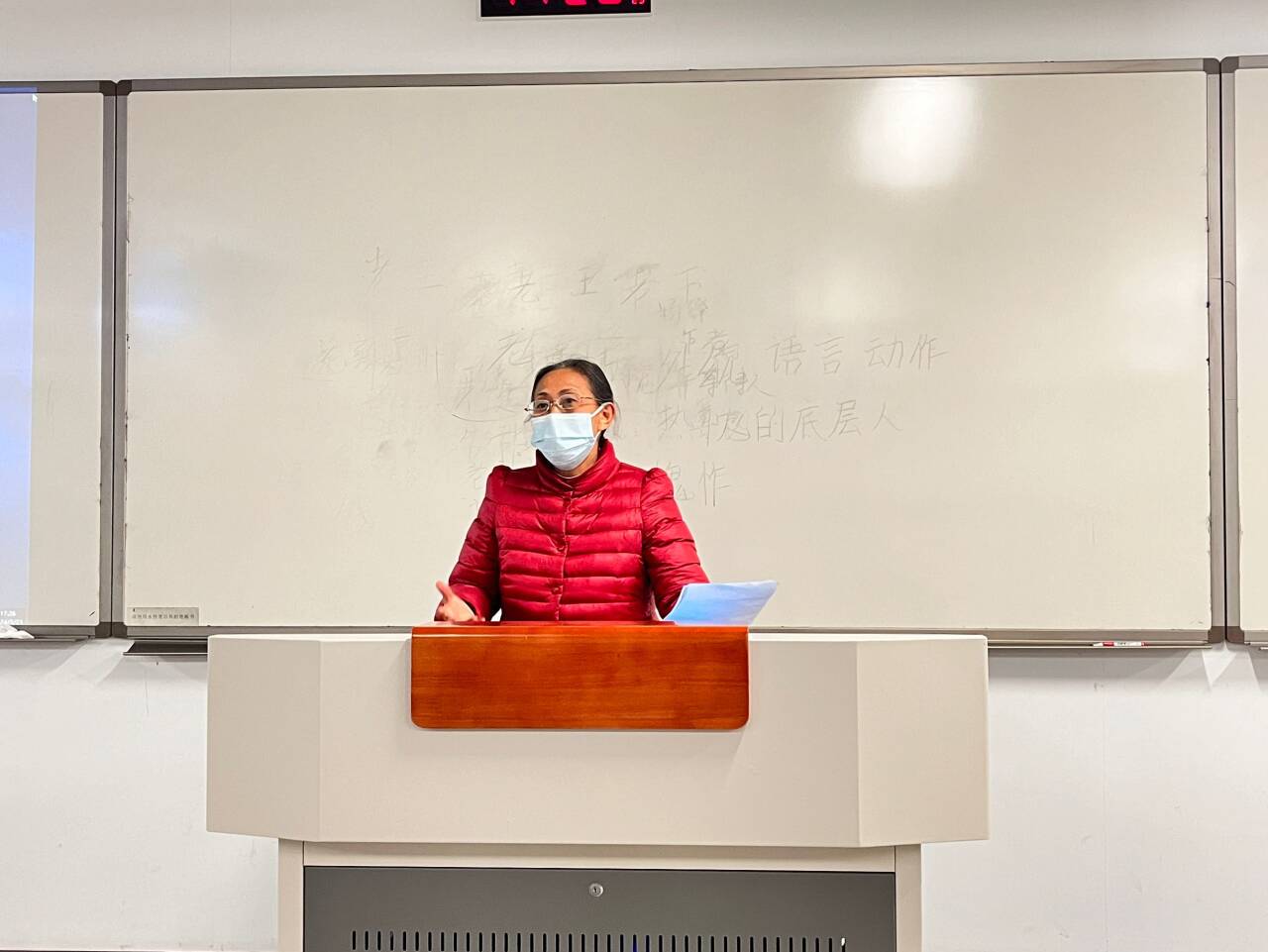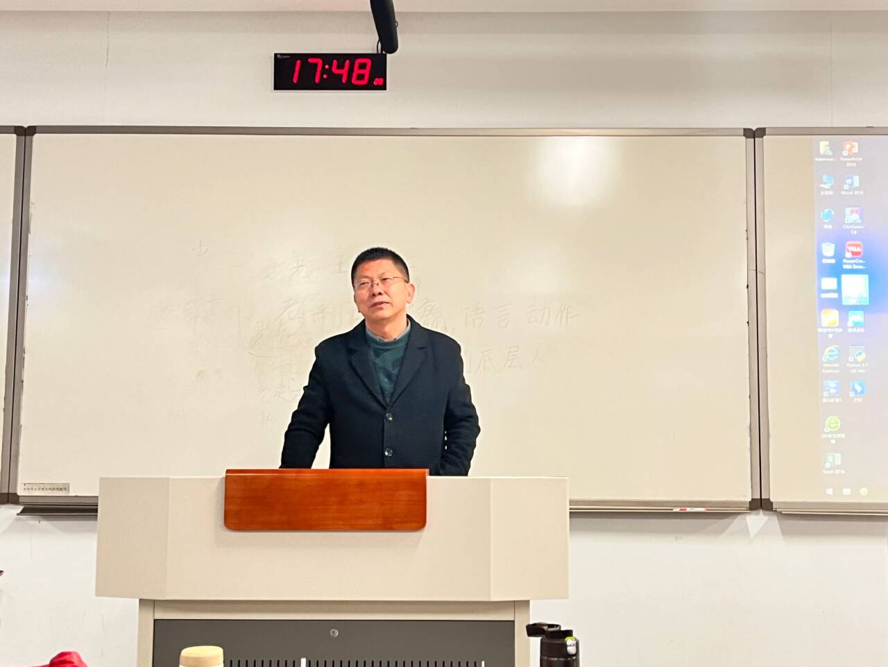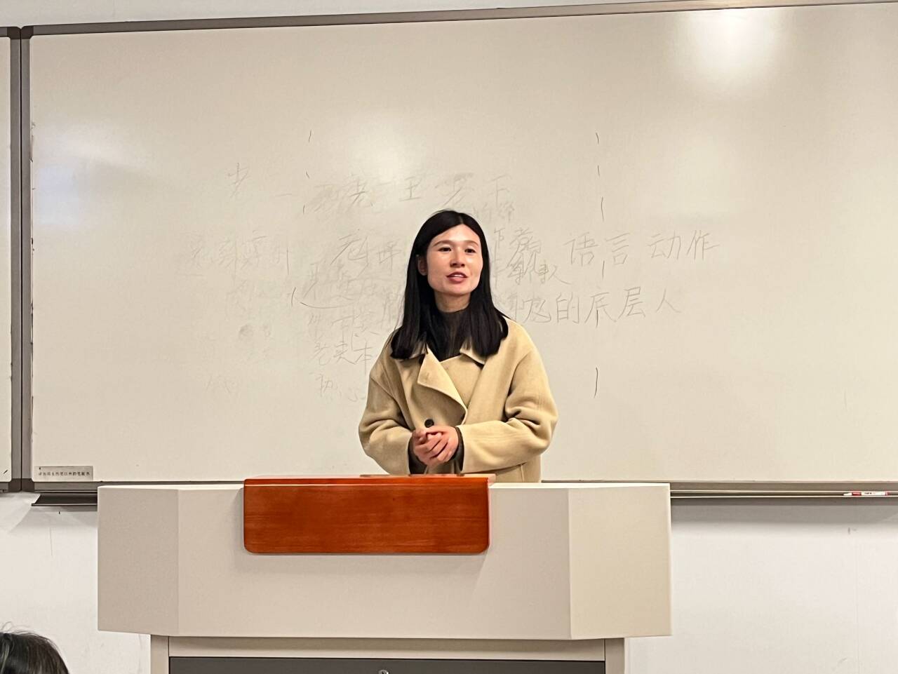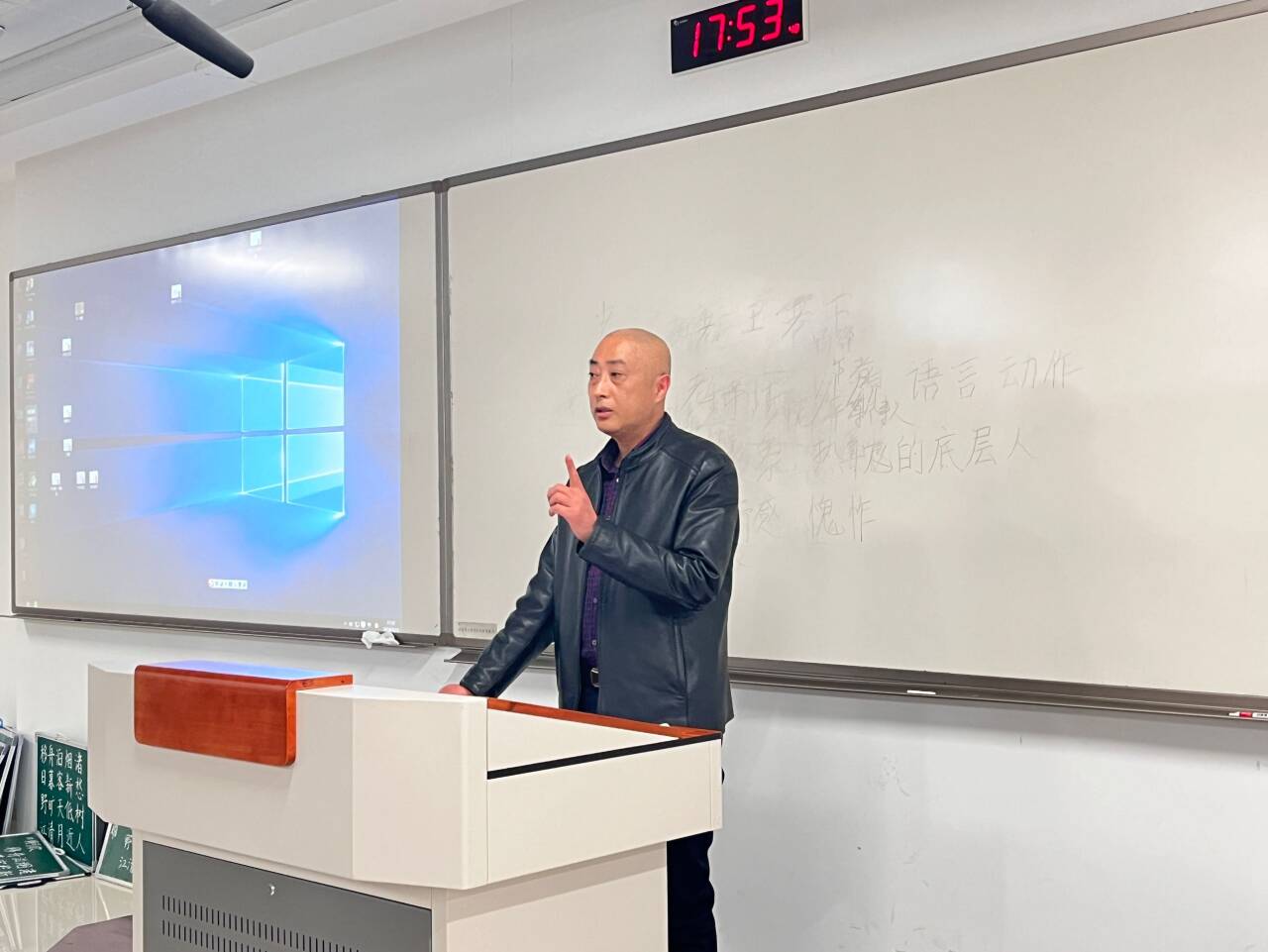 接着进行模拟授课比赛。模拟授课课文为杨绛的《老王》。在模拟授课中比赛中,选手们仪容整洁、热情充沛,展现出了良好的教学基本功,选手们在文本分析、教学设计、语言表达和教姿教态等方面都展现了我院21级本科生的风采。各位同学模拟授课的切入点不同,有的着重从《老王》课文的最后一句话“那是一个幸运的人对一个不幸者的愧怍”入手分析文中的主旨,有的从老王和作者杨绛夫妇交往中的几件小事出发分析人物形象与作者的情感态度,还有的选取人物形象的语言进行文本细读。每位选手模拟授课结束后,由5评委各自签名打分,并由工作人员立即统分。