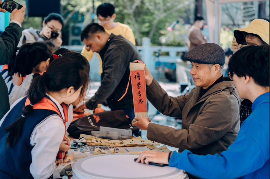 此次活动内容丰富。“城市书享集市”打破常规书享界面,以线下的流动书摊快闪,燃动当代“知识社交场”;活动现场发布“带领孩子们翻书越岭”公益捐赠活动内容,鼓励来宾为贫困山区孩子进行捐助;旧书交换市集旨在倡导“多元阅读”;古籍摊位上除了古籍书籍的展示、雕版印刷的传统体验,还有书法老师现场书写创意作品,让青春在传统文化中熠熠生光。