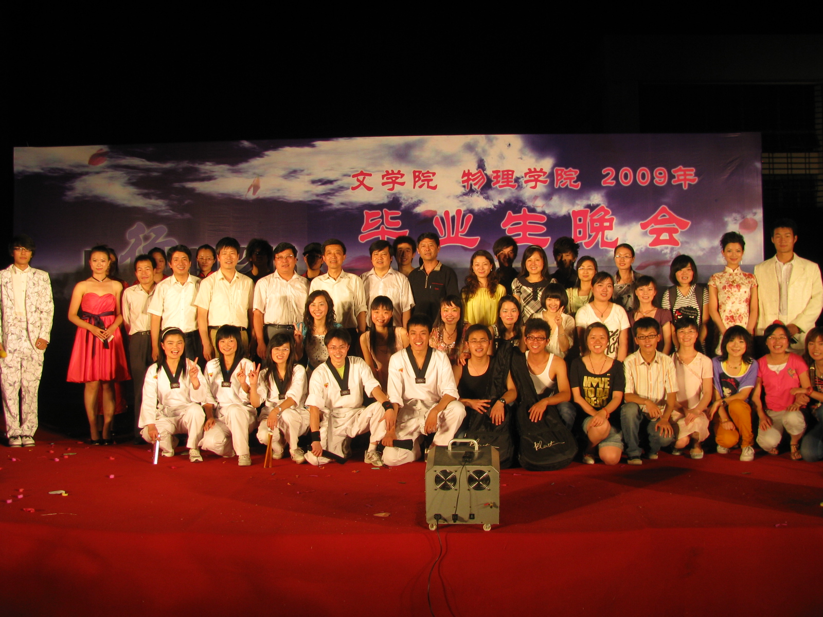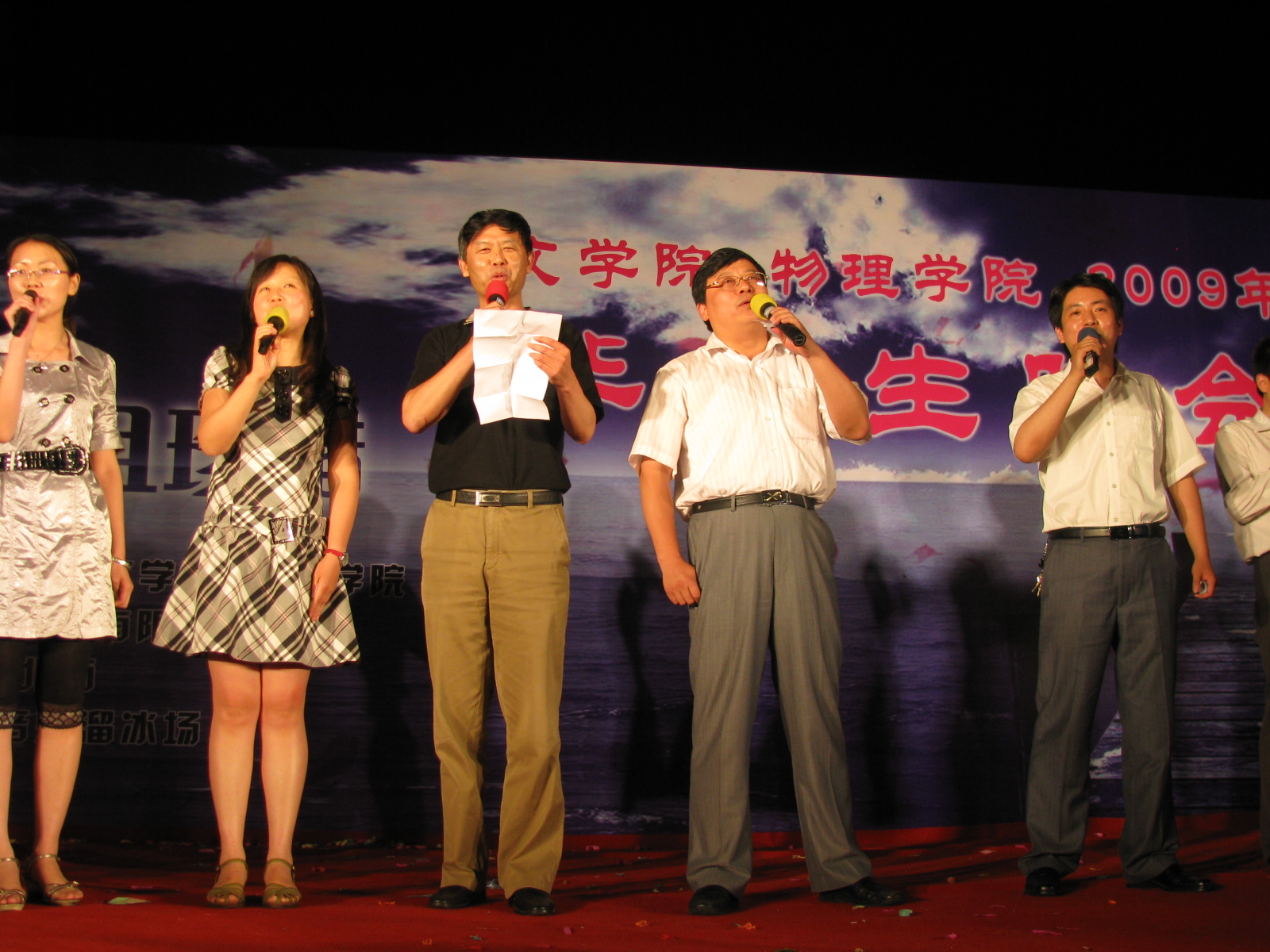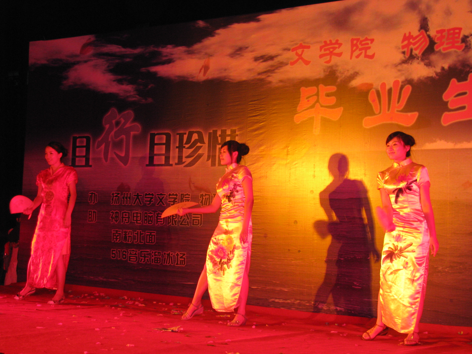 且行且珍惜•扬州大学2009届文学院联合物理学院毕业生晚会华丽上演 6月10日晚,由我校文学院与物理学院联合举办的“且行且珍惜”2009年毕业生晚会在瘦西湖校区篮球场隆重举行。校团委、文学院和物理学院相关领导、两院09届毕业生参与并观看了晚会。