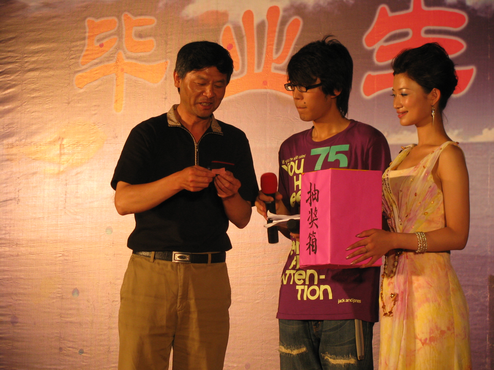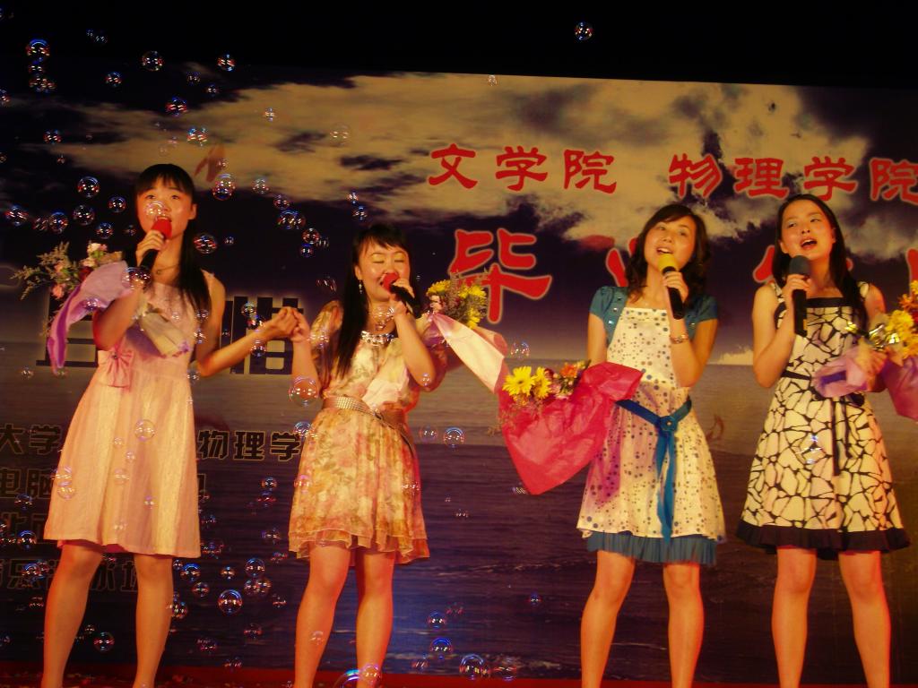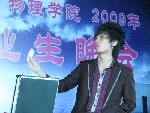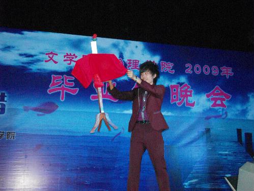 “我相信自由自在我相信希望,我相信伸手就能碰到天……”在一首荡气回肠的《我相信》歌曲中,晚会拉开了帷幕。随后,学生们精心策划与准备的节目一一精彩亮相。古典柔美的《夜来香》与激情四射的现代肚皮舞相结合,尽显学生魅力。小品《寻找魅力之淘气少女寻魅记》以一个女生寻找魅力的故事为线索,体现了当代大学生对于美和自信的追求及对未来的美好期望,演员们诙谐生动的表演,获得了满堂喝彩。女生小合唱《相逢是首歌》,情感真切,表达了毕业生们对即将离开母校、与老师同学分别的不舍之情。素有“扬大版刘谦”之称的物理学院毕业生王杰,为大家上演了一场奇幻的魔术盛宴,一把扇子在他手里转眼变成了一朵娇艳欲滴的玫瑰花,一张被撕烂的报纸经他几次折叠后居然又完好无损的呈现在大家眼前,令场下观众惊叹连连。
