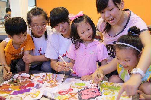 “Q版”梅西、彩色足球……10日上午,在世界杯决赛即将擂响战鼓之际,来自扬州大学的文学院大学生和扬州市王小平古筝室的一群5、6岁的孩子们一起绘制创意球衣,为喜爱的球队摇旗呐喊。