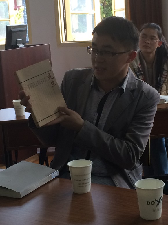 接着,秦力同学谈他自己对《围城》人物的认识。方鸿渐的名字取自《易经》,“鸿渐”二字有“渐渐飞黄腾达”之意,但小说的结局他却不尽如自己的名字。又如赵辛楣的名字,双来自《楚辞·九歌》。其中《湘夫人》一节唱道:“桂栋兮兰燎,辛夷楣兮药房”。此处辛楣,指香草作户楣,寓高贵堂正之意。