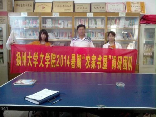 为响应省新闻出版局、团省委决定实施的2014年江苏省大学生暑期社会实践“农家书屋普查”专项活动的号召,以切实摸准全省“农家书屋提升工程”各个试点县(市、区)农家书屋建设及运转情况,扬州大学文学院的同学们来到宝应县开展专项调查。