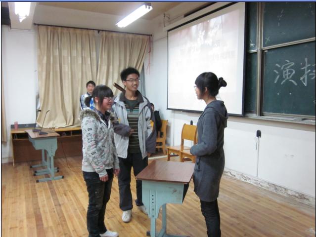 五、活动内容:整个活动分为三个环节。第一个环节叫“舞台表演”,各组选手模仿电影或电视剧里的一段经典片段。第二环节叫“自由交流”,各组选手都派出一个代表对其他各组的表演进行点评,提出建设性的改进。第三环节叫“即兴表演”,选手根据所选择的场景,自编一段,进行演绎。