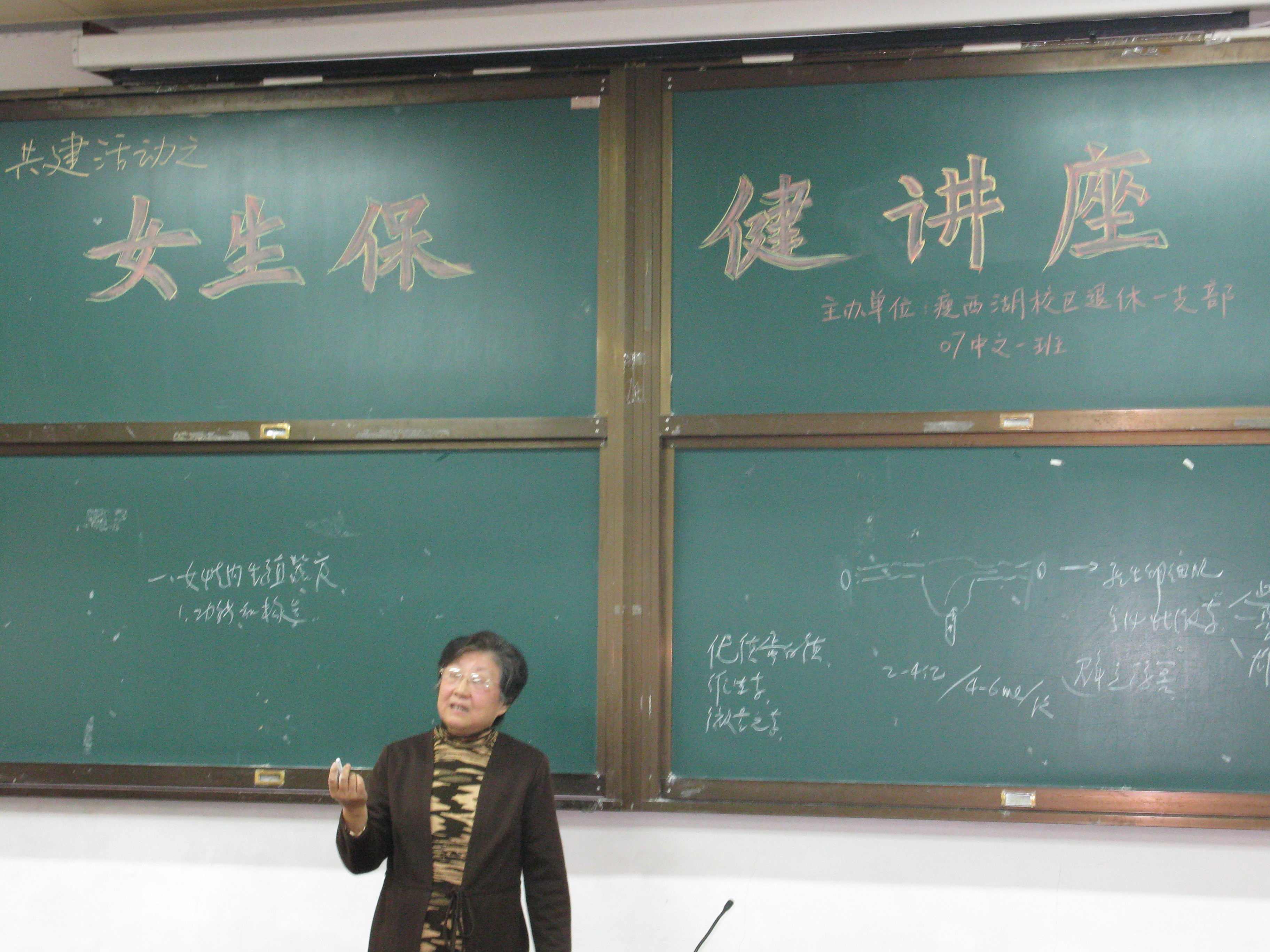 “怎样保护卵巢避免受到伤害?主要有……”11月4日曾任瘦西湖校区医务室主任,退休一支部的田友君老师为07中文一班的女学生们进行了女生健康知识宣传,增进女大学生的身心健康、提高自我保健意识。
