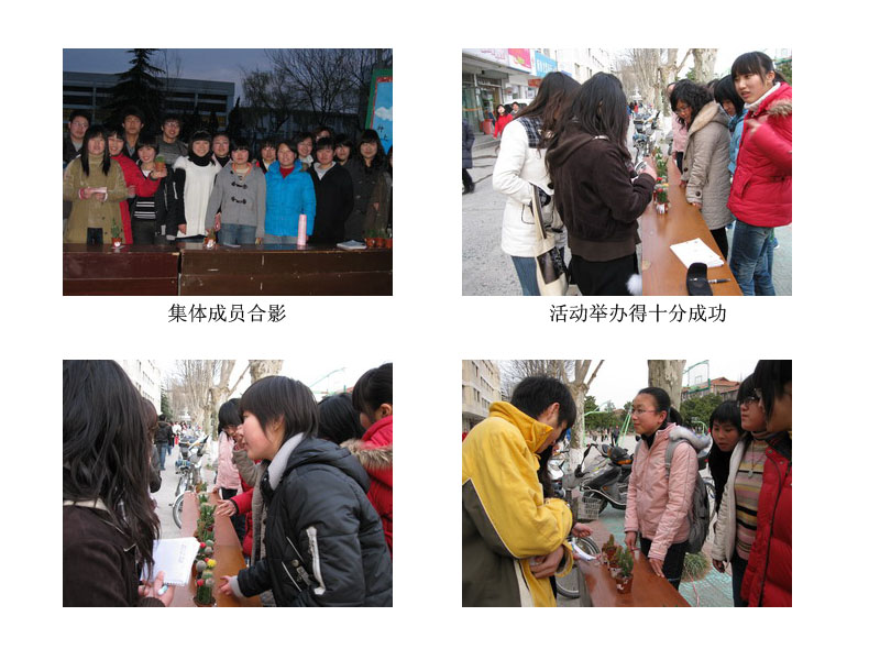 此次活动于2009年3月11日由文学院与数科院两院的心协合办。活动目的在于:第一步,正值植树节,以售卖小盆景的方式将一抹绿色传递到同学们的宿舍和生活里;第二步,用未售出的盆景和售卖所得资金,购买学习用品和生活用品,送给农民工子弟小学,为他们的学习生活和身心健康成长带来一抹爱与希望的绿色。