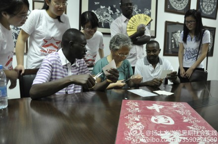 7月8日,文学院“青春合伙人”志愿小组带三名苏丹友人来到扬州剪纸博物馆参观精美展品,并与剪纸大师张秀芳共同体验剪纸乐趣。