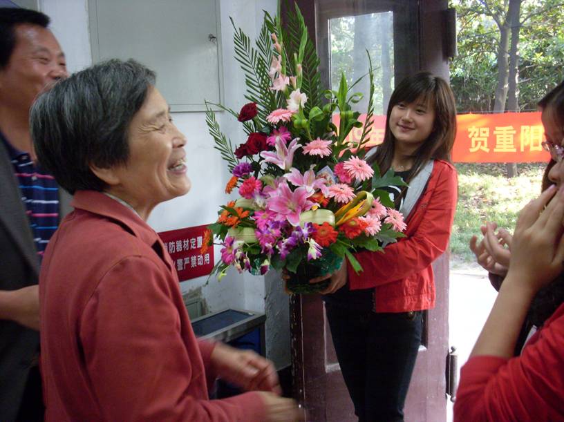 一年一度的重阳节,这一天是老人们的节日,下午,班长、团支书和其他一些班委代表我们07中文一班全体同学向瘦西湖校区退休一支部送去节日的鲜花与祝福。