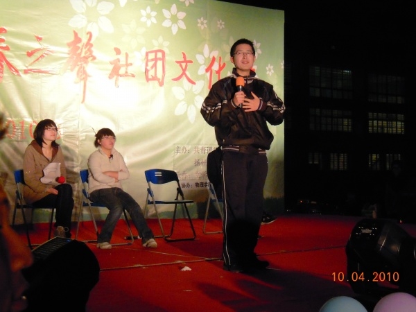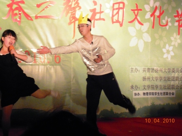 410,汉语言文化节开幕式“春之声”召开,由文学院主办。同学们积极参与,有二十位同学都参加了晚会表演,其他同学也参加后勤工作。大家都大力支持参与晚会。得到了书记们的一致好评。