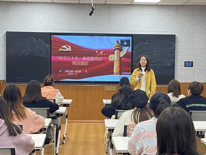 11月3日,我院研究生第一党支部组织开展“学习二十大,永远跟党走”主题党日活动,旨在持续筑牢党支部的堡垒作用,进一步强化支部党员对党的二十大精神的学习和贯彻。会议由支委魏小倩主持。