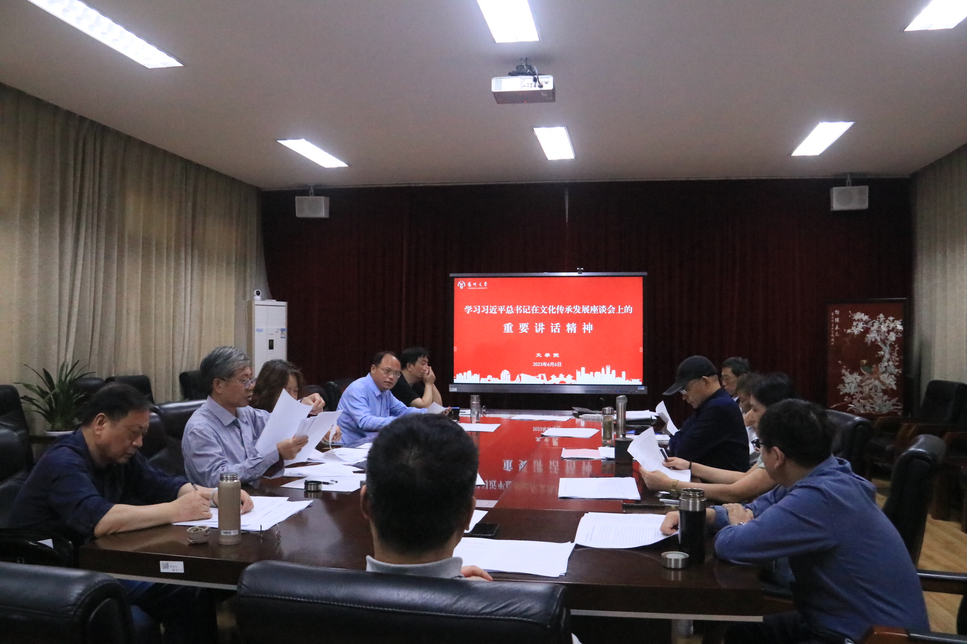 结合当前正在开展的学习贯彻习近平新时代中国特色社会主义思想主题教育,学院及时跟进,认真组织学习习近平总书记在文化传承发展座谈会上的重要讲话精神。6月5日院党委会第一议题开展学习讨论,6月6日,学院组织学科带头人进行座谈研讨。习近平总书记重要讲话精神引起热烈反响。大家表示,要更好担负起新的文化使命,坚持学以致用,为学校一流学科创建贡献力量;要更好挖掘中华优秀传统文化的重要元素,加强研究阐释,为建设中华民族现代文明添砖加瓦。下一步,学院还将在全体师生中采取多种形式组织深入学习讨论。