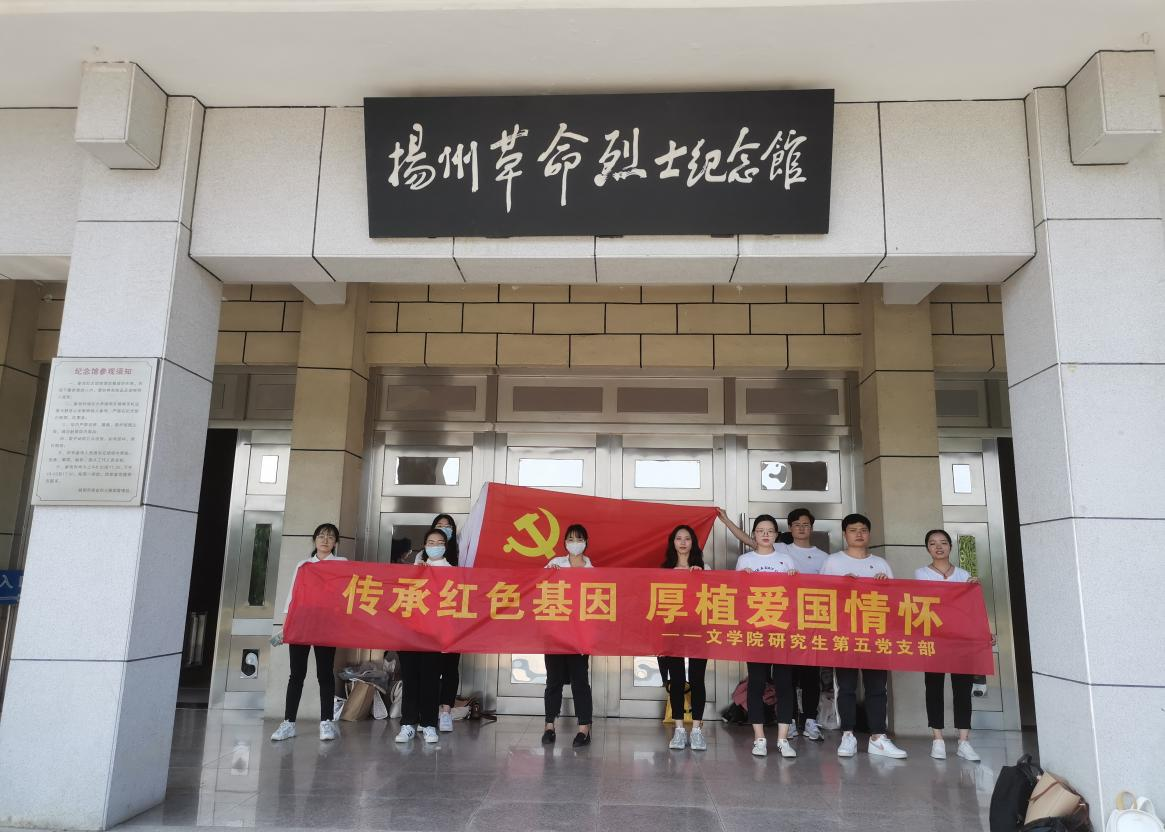为了重温革命先辈英雄事迹,感悟党的的百年光辉历程,用行动学习党的历史,传承党的成功经验。6月23日,文学院研究生第五党支部前往扬州市革命烈士陵园,参与了扬州市学生联合会主办的庆祝建党100周年的祭奠先烈活动,同时举办了“传承红色基因,厚植爱国情怀”的主题党日活动。