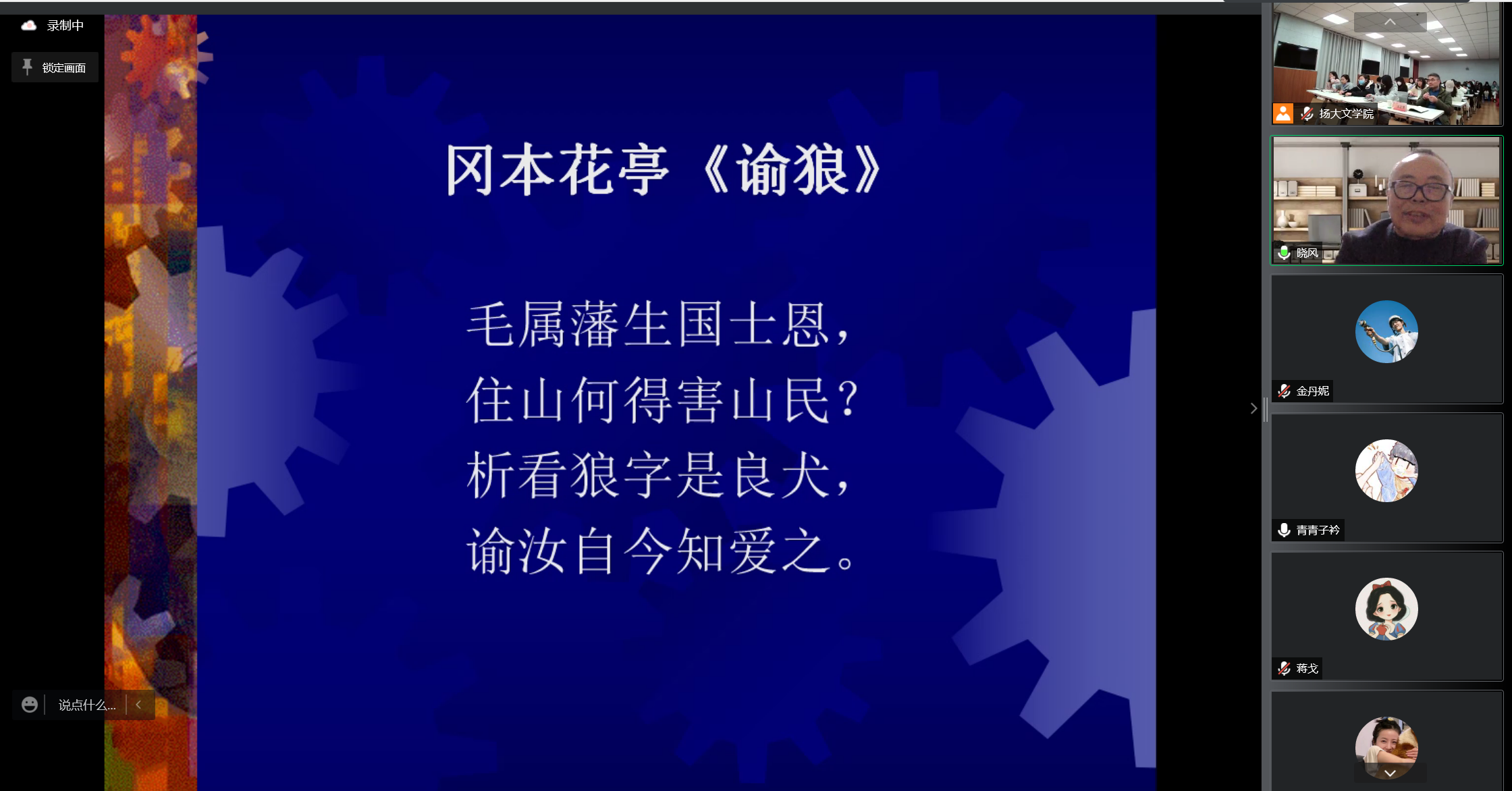 12月20日晚,国家级教学名师、教育部中文教指委委员、浙江工业大学教授、我院杰出校友肖瑞峰通过线上形式为师生做了题为《白居易与日本平安朝诗坛——经典传播与接受的一个案例》的讲座。讲座由院长王定勇教授主持。