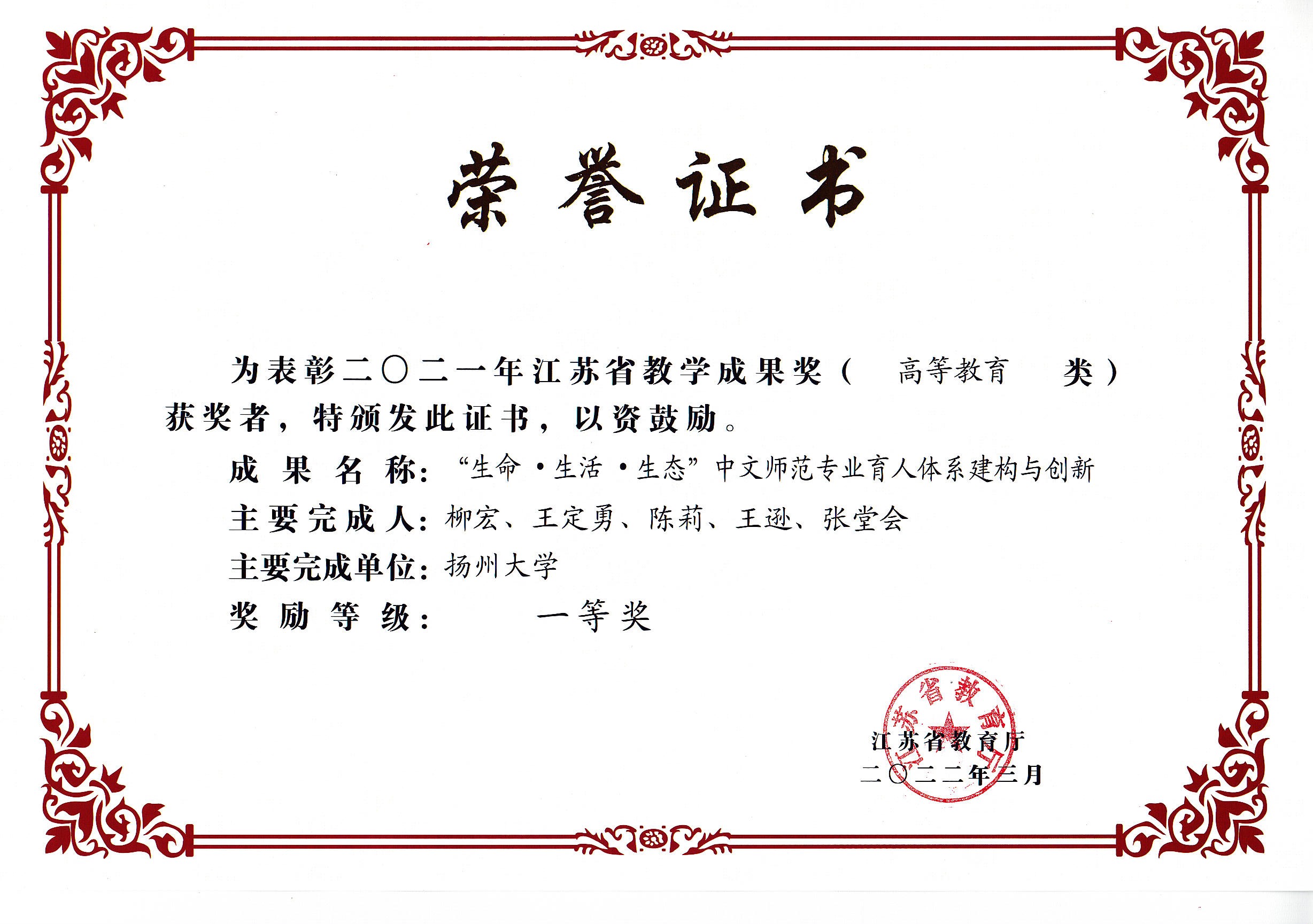 日前,江苏省教育厅发布了《关于公布2021年江苏省教学成果奖获奖项目的通知》(苏教人〔2022〕4号 ),我院申报的教学成果“‘生命•生活•生态’中文师范教育观的传承与创新”荣获一等奖。