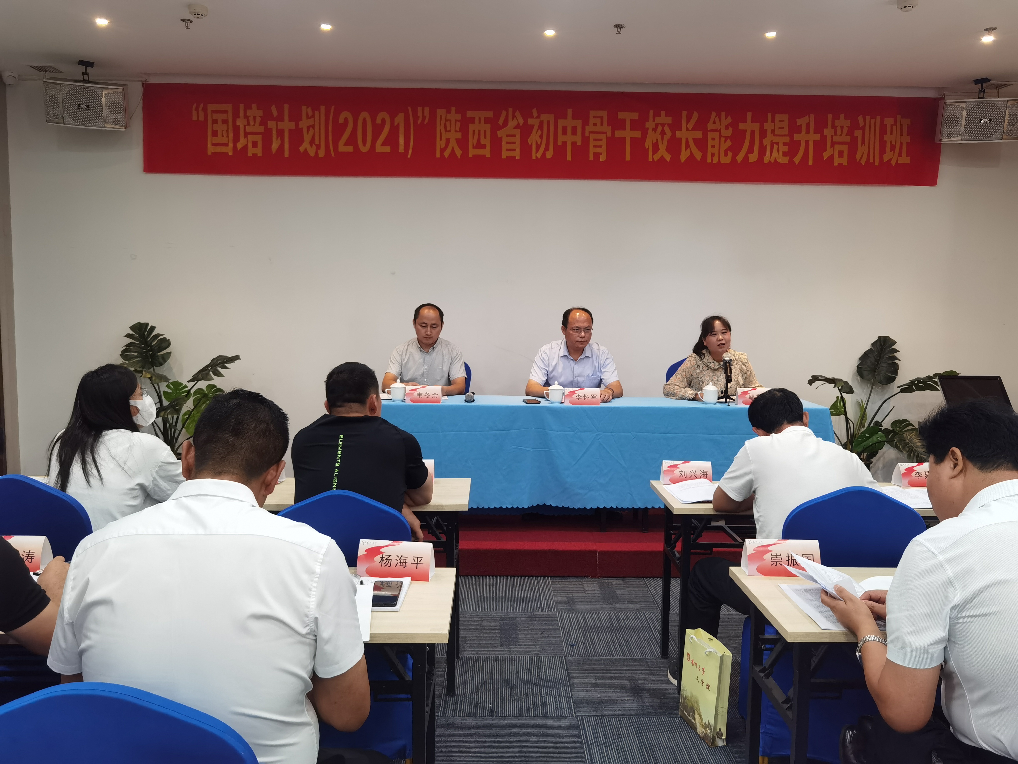 8月7日上午,由陕西省教育厅主办、我院承办的陕西省“国培计划(2021)”初中骨干校长能力提升培训班在智选假日酒店开班。开班仪式由院党委李书记主持。