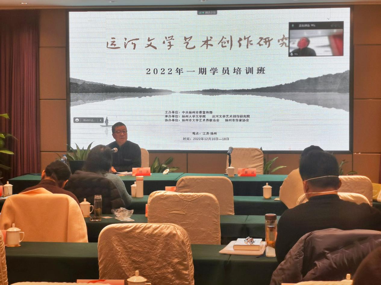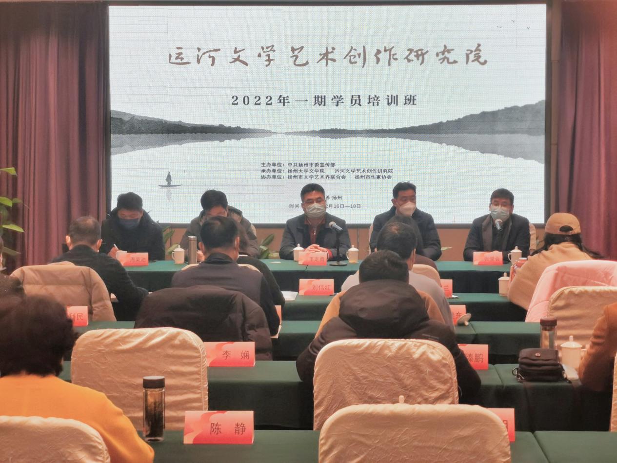 12月16日至18日,扬州市委宣传部主办,扬州大学文学院承办、扬州市文学艺术界联合会和扬州市作家协会协办的“运河文学艺术创作研究院”作家学员培训班在扬州举行。扬州大学文学院院长王定勇、扬州市委宣传部嵇鸣洲、市文联朱红林、市作协周荣池等领导出席开班典礼,“运河文学艺术创作研究院”院长张堂会教授主持了开班典礼。王定勇教授在致辞中表示,二十大以来,我们已经走向了一个新征程,希望作家朋友们用自己的笔来讴歌这个充满热情、希望的新时代,描绘人民越来越好的生活,并预祝运河文学艺术创作研究院培训班能孕育出更多的知名作家,走向全国,走向世界。广陵区作协主席刘伟红代表学员发言,高度赞扬了“运河文学艺术创作研究院”近几年来为提升扬州作家创作能力所做出的贡献,并表示全体学员一定会珍惜培训机会,努力学习,创作出更多更好的作品。