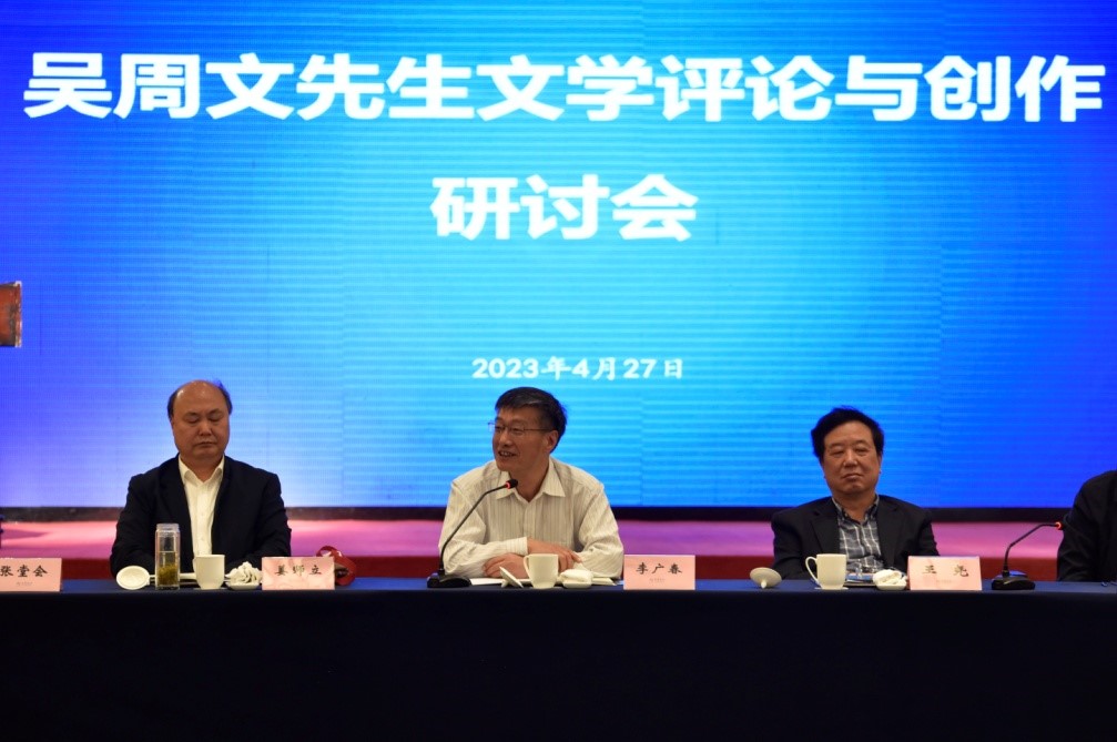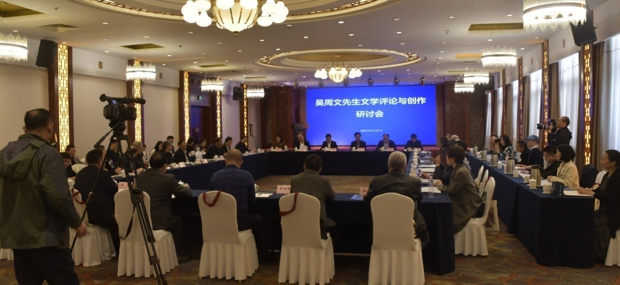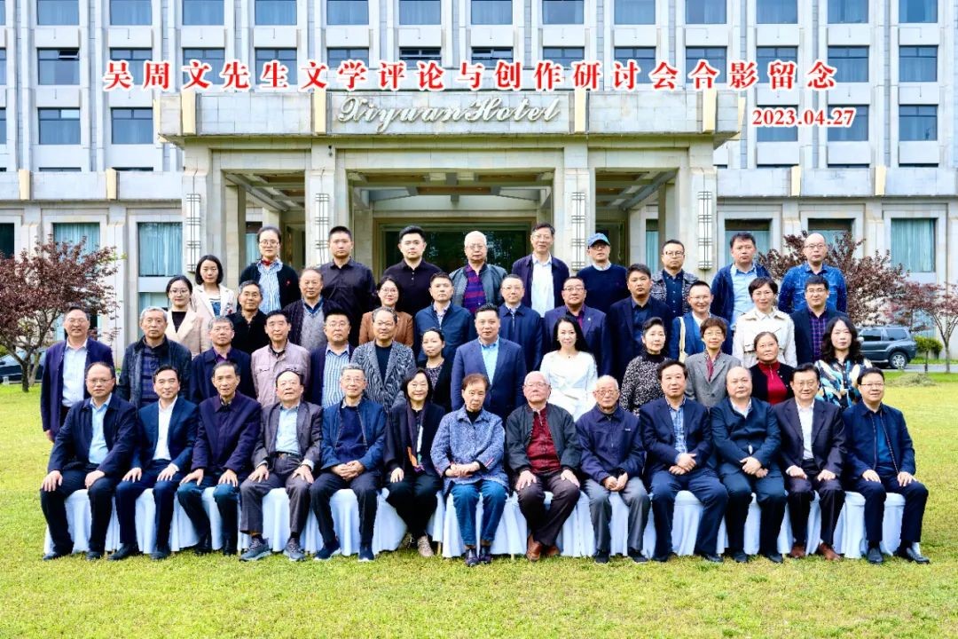 春风化雨迎桃李,遥山近水皆有情。2023年4月27日,是著名学者、中国散文学会原副会长、扬州大学文学院教授吴周文先生逝世一周年的日子。27日下午,“吴周文先生文学评论与创作研讨会”在扬州市西园饭店举行。扬州大学、扬州市委宣传部、江苏省作家协会、扬州市文联、扬州大学文学院、扬州市作家协会等单位的有关领导,吴周文先生的亲属,生前友人,来自扬州大学、苏州大学、上海戏剧学院、浙江大学等高校的专家学者及吴周文先生的学生齐聚一堂。