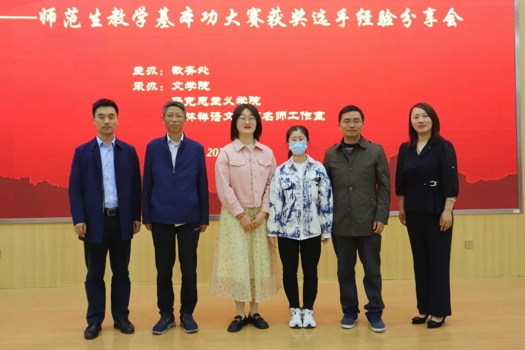5月12日下午14:30,我院在荷花池校区逸夫图书馆报告厅举办“江苏省师范生教学基本功大赛获奖选手经验分享会”,分享会系我校首届师范生教学技能展示月系列活动。教务处副处长俞福丽老师、副院长王逊老师、汉语言文学专业主任张立兵老师、马克思主义学院思想政治教育专业教研部主任朱益飞老师、江苏省扬州中学陈国林老师出席活动。2020级、2021级汉语言文学专业全体同学参加了本次活动。