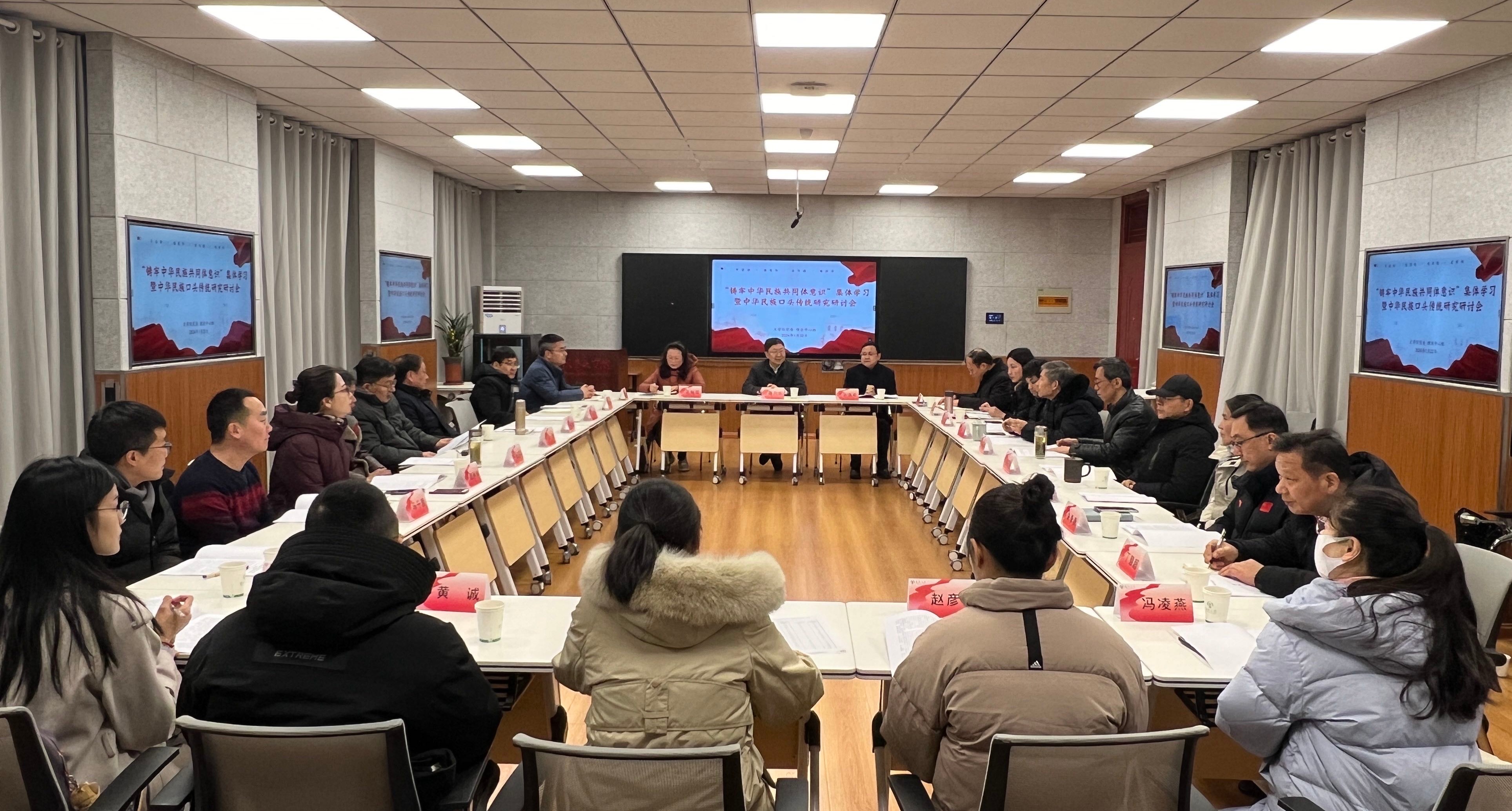 为不断加强党建与内涵建设相融合,进一步推动“一融双高”,1月22日,文学院党委在瘦西湖校区40号楼智慧教室开展铸牢中华民族共同体意识专题学习暨中华民族口头传统研究研讨会。