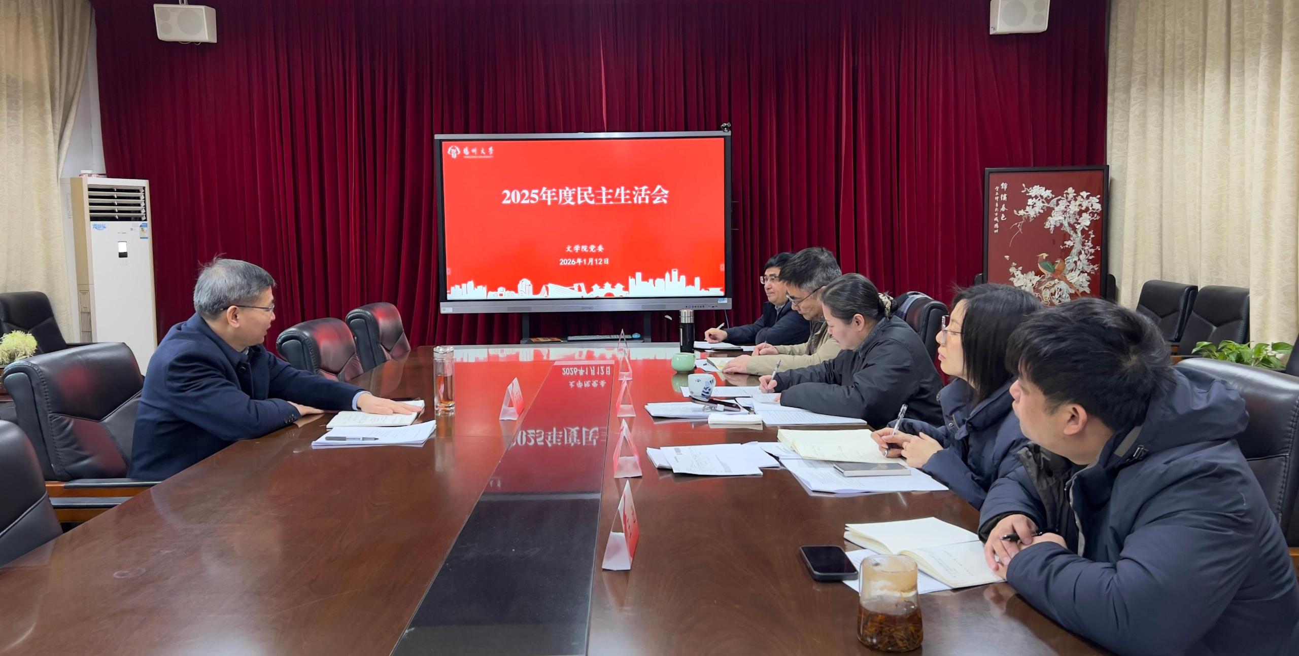 1月12日,文学院党委召开2025年度学院领导班子民主生活会。校长刘巧泉到会督导。