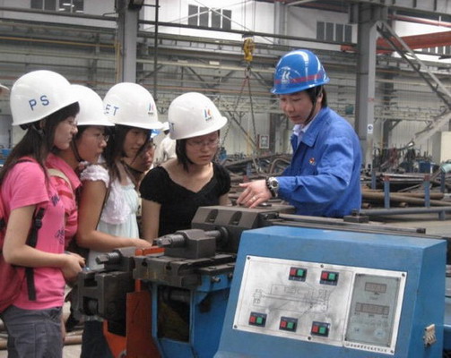 7月17日,扬州大学文学院的5位“90后”女生们来到具有“亚洲最大的民营企业造船厂”之称的南通如皋熔盛船厂进行参观实践。学生们在工人师傅的带领下了解了造船的整个流程,并亲自体验了一回“蓝领”生活。