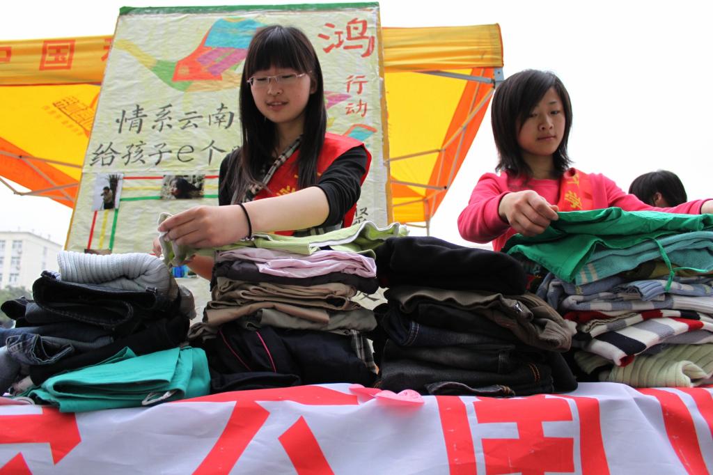 “大家动作快一点,把衣服都叠整齐了,分类放好。”5月9日,在扬州大学瘦西湖校区的篮球场上,文学院青年志愿者协会的志愿者们开展了“情系云南临沧,给孩子e个暖冬”的募集活动。他们在大学生中募集衣物,并将整理好后的衣物统一送往云南临沧灾区。此活动受到了整个校区学生的关注,短短两小时内,志愿者们共收集到一万余件衣物,装了整整二十三个收纳袋。
