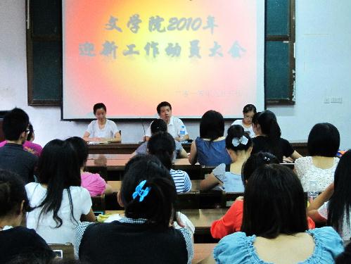 9月5日下午,新一届负责迎新工作的主要学生干部齐聚团委报告厅,举行迎新工作动员大会,团委书记杨咏、2010级辅导员张琼老师出席了此会。