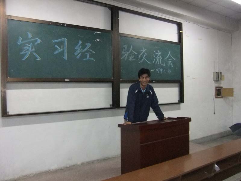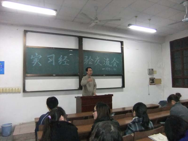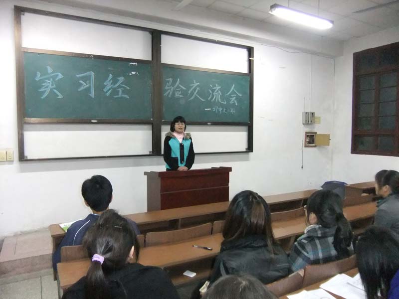 11月3日晚,扬大文学院07中文二班的同学们在班主任陈军老师的带领下开展了一次特别而又务实的班会----实习经验交流会。07中文二班由师范和文秘两个专业的同学组成。师范的同学们经由两个月的实习上课,不仅使自己对于如何上好语文课有了更好更实在的理解,还收获了实习学校老师和学生的好评。文秘班的同学则在实际操作中,更好地了解社会,将文秘学习的理论融会贯通到了实际践行当中。听了同学们的介绍,作为班主任的陈军老师既对同学们顺利完成实习给予了祝贺,又对即将面临毕业的同学们作了的诚恳的忠告。他希望选择找工作的同学能够把握好机遇,珍惜每一次锻炼的机会。而对于选择考研或考公务员的同学,他则鼓励大家要坚持,为理想而不懈奋斗。这样一次班会不仅交流了大家的实习经验,还促进了班级的和谐,无论是同学们自己的经验还是陈军老师的教诲都让大家受益匪浅。(杨倩)