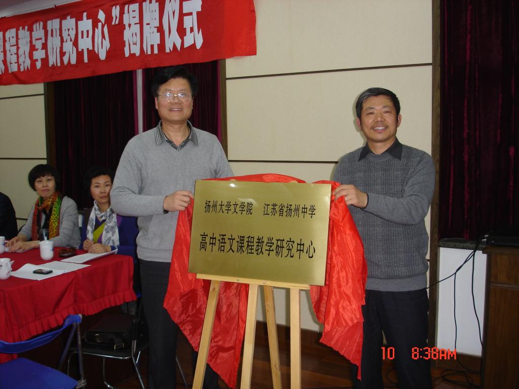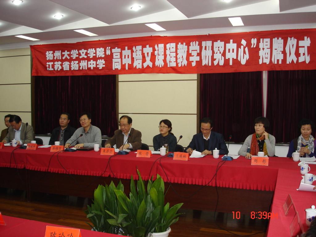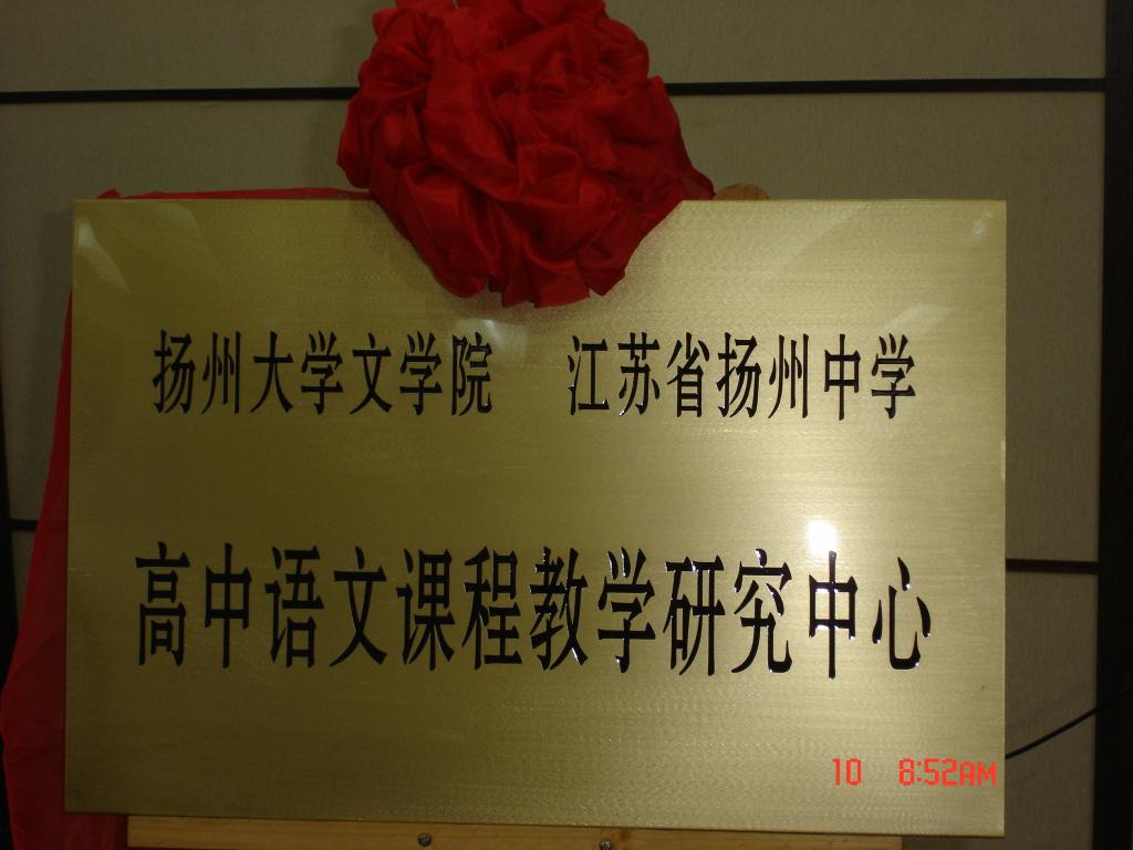 2011年4月10日,扬州大学文学院与江苏省扬州中学合作成立“高中语文课程教学研究中心”,在扬州中学举行了揭牌仪式。该“中心”是以扬州大学文学院和江苏省扬州中学为依托,专门研究高中语文课程教学的学术研究组织。“中心”致力于高中语文课程教学的理论研究和实践研究。研究任务涉及语文教育思想、高中语文课程建设、教材建设、高中语文教学策略与模式、高中语文教师专业发展等诸多方面。