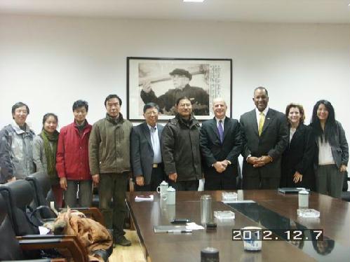 今天上午,美国肯尼索州立大学孔子学院金克华院长等一行5人来我院访问,文学院院长许建中教授、副院长陈学广教授、汉语国际教育硕士学位专业负责人张亚军教授会见了客人。双方就孔子学院志愿者的工作情况、志愿者的培养交流等问题进行了深入的交流和探讨,并就进一步深入的合作达成了初步的意向。