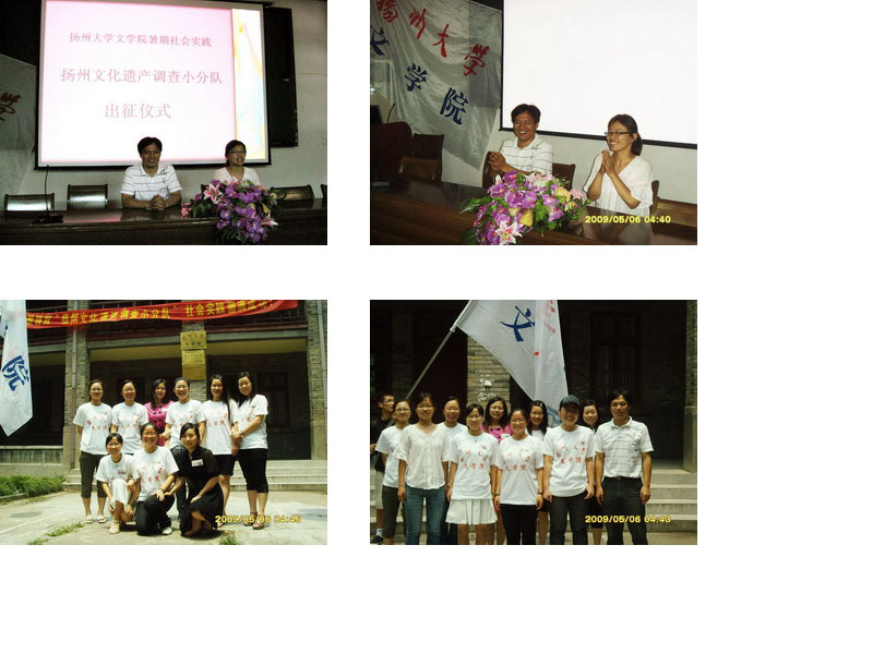 经过一个多月紧锣密鼓的前期准备,“扬州文化遗迹”调查小分队万事俱备,就等实践的号角吹响。该团队由来自不同专业的9名研究生组成,通过走访三元路、沉香亭、瓜洲古渡等著名的扬州遗迹,了解扬州遗迹,传承扬州文明。7月2日,“扬州文化遗迹调查小分队出征仪式”在文学院报告厅隆重举行。团委老师张琼、研究生处张继华老师等出席了此次会议,并在会议上作了重要讲话。