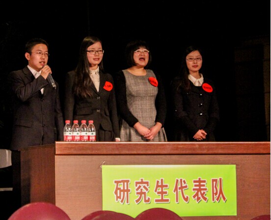 第三环节——“一站到底”将本次活动推向了高潮。中场休息时,文秘代表队表示对这一环节很有信心,并不担心任何对手;而研究生代表队的陆惠敏同学则认为作为研究生的代表压力比较大,希望能战胜自己的恐惧。最终,“站神”的称号由中文代表队获得,杜冰越同学学识的渊博以及临场的镇定赢得了在场所有人的喝彩。