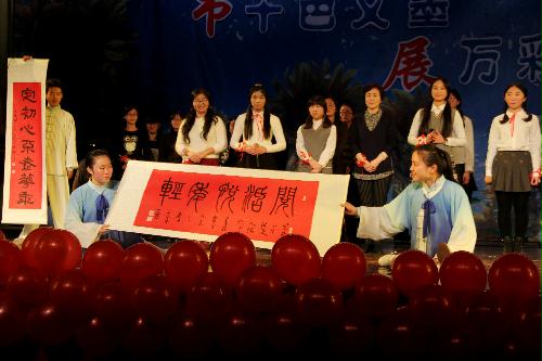 时间的车轮悠悠荡荡,然而不论时代怎样变迁,汉字的传承都会紧随时代,万世流芳。中文1502班的师生演绎的《琅嬛之韵》为大家讲述汉字的变迁。从龟甲骨祀到金简成书到绢帛传情再到太白纸肆最后到信息时代。同学们用一幕又一幕形式各样的表演,展示了汉字中蕴含的源远流长的文化。