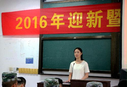 接下来原学生会主席王怡雯向学弟学妹们传授她的大学学习生活经验,“学习即生活,但是我们只有在完成学习任务后才能真正享受生活。大学学习最重要的不是死读书,而是思考。对于处理舍友之间的关系,核心是两个字‘宽容’,希望大家不忘初心,与梦想同行。”新生代表中文1601的葛秋雁同学也发表了她对大学生活的看法以及希望。