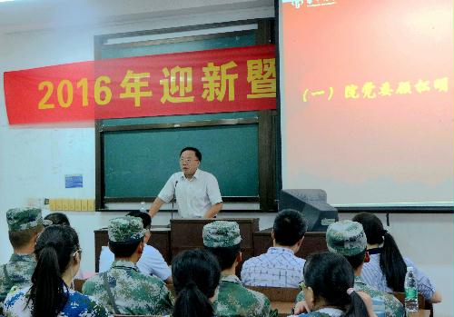 9月4日上午8点半,文学院2016年迎新暨军训动员大会在文科楼104隆重举行。院党委书记顾松明、院长陈军,院党委副书记张平、副院长郭院林、王定勇,古风教授及全体辅导员老师参加了此次动员大会。大会由张平副书记主持。