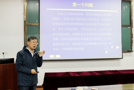 齐沪扬教授的报告题为“关于语气成分研究的一些思考——基于汉语作为第二语言的研究”。讲座主要围绕汉语语气成分研究中的五个问题展开,即: 1.语气成分中语气词和语调孰轻孰重;2.语序规则的实际笼罩面以及语气副词和助动词在句子中的连用规则问题;3.如何使用标记理论来解释二语习得中语气词“吗”、“呢”等的遗漏问题;4.如何通过标记理论来预测和解释“吗”的习得困难;5.立足于习得与认知研究,二语习得领域值得研究的若干问题。