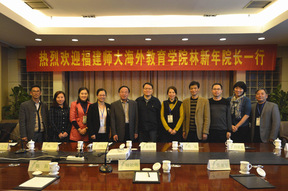 11月12日,福建师范大学海外教育学院林新年院长带领学院教学科研骨干教师一行七人来我院访问座谈,主要就汉语国际教育本科专业及硕士专业的人才培养方案、志愿者外派情况、学生就业、专业教师师资队伍建设及科研工作展开深入交谈。我院党委书记顾松明出席接待,并就我院情况进行了详细解答。交谈气氛融洽,互有收获,并达成院级师生长期交流的合作意向。