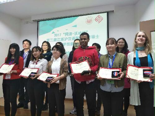 我院在江浙沪地区汉语国际教育硕士专业比赛中荣获佳绩2017年4月8日,“第三届江浙沪汉语国际教育硕士技能大赛”在同济大学隆重举行。本次大赛由江苏、浙江、上海十七所具备汉语国际教育硕士专业学位点的高校派出选手参加。经过教案撰写、多媒体制作、说课、课堂展示、课堂反思、评委提问六个环节的比赛,共有六所高校获得奖项。获奖学校分别是:华东师范大学、浙江师范大学、上海外国语大学、扬州大学、同济大学、浙江大学。在陈莉老师、颜明老师的指导下,我院2016级汉语国际教育硕士专业学生,来自印度尼西亚的林利庭,比赛中表现突出,总分排名第四,荣获三等奖。此次江苏参赛高校还有南京大学、东南大学、苏州大学,我校是江苏省四所高校中唯一一个获奖单位!