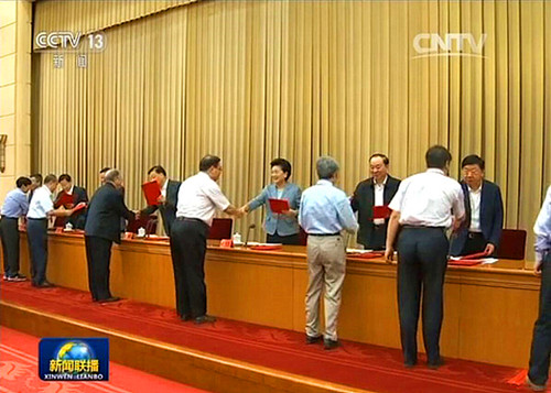 会议对入选2016年度《国家哲学社会科学成果文库》的优秀成果进行表彰,刘延东为我院姚文放教授颁奖并向其表示祝贺。