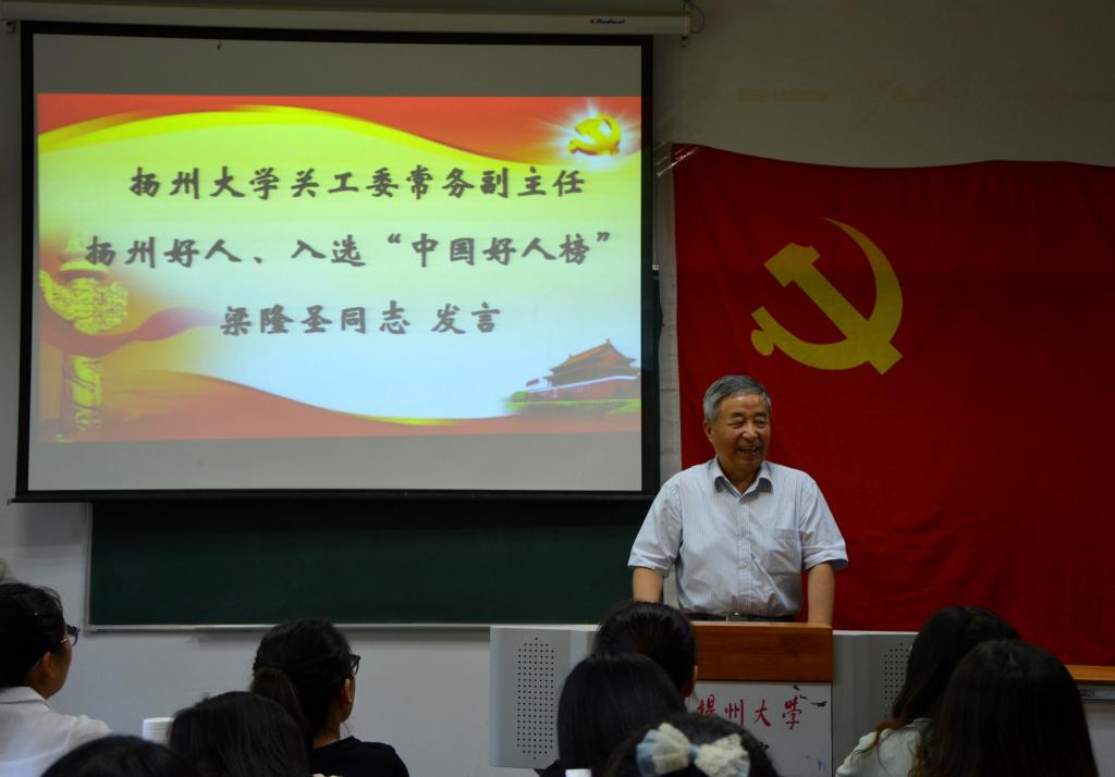 随后,张书记对梁老师多年来的工作进行了深入介绍,要求所有学生党员都要以梁老师为榜样,牢记梁老师教诲。会上,党委书记顾松明还向所有同学提出了要求和希望。