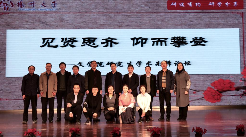 “见贤思齐,仰而攀登”——我院举办研究生学术先锋论坛 4月12日晚,我院在荷花池校区大学生活动中心三楼小剧场举办了“见贤思齐 仰而攀登”研究生学术先锋论坛活动。扬州大学副校长陈亚平教授、校党委常委宣传部部长张信华老师、校研究生院副院长吉丹如老师、我院全体院领导出席本次论坛。北京大学中文系潘建国教授、南京大学文学院李昌舒教授、扬州大学文学院许建中教授、古风教授作为点评嘉宾受邀参加此次活动。