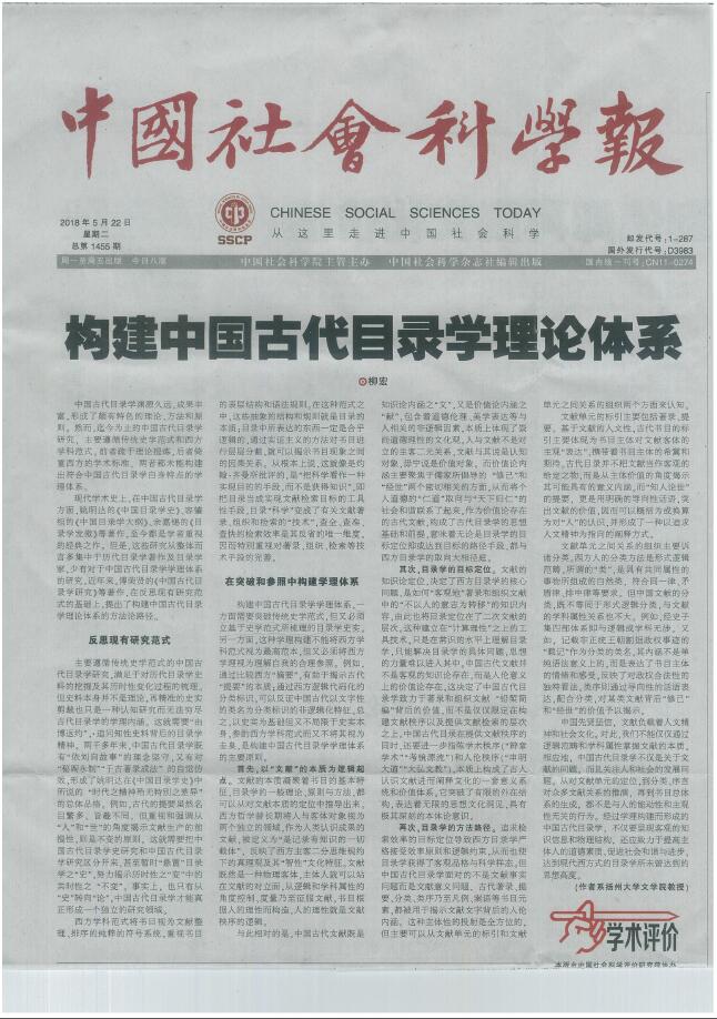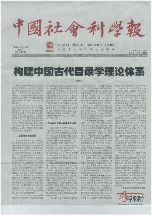 日前,《中国社会科学报》头版头条刊发了我院柳宏教授撰写的文章《构建中国古代目录学理论体系》。