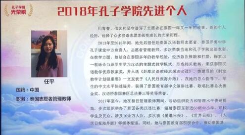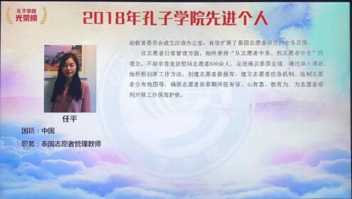我院研究生马抱抱、2016届校友任平荣获全球孔子学院先进个人奖12月4—5日,在成都举行的第十三届孔子学院大会上,我院研究生马抱抱、2016届校友任平荣获全球孔子学院先进个人奖。此奖项表彰了为孔子学院建设发展做出卓越贡献的个人,每年在全世界孔子学院中外方理事长、理事、院长、教师、志愿者中遴选先进个人并授予荣誉奖章。此次表彰41位先进个人,其中志愿者5名。马抱抱和任平从全球近万名志愿者中脱颖而出,是我校首批获得此项殊荣的汉语志愿者。