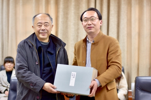 汪朗先生、汪朝女士还向我院赠送了新版《汪曾祺全集》,并同老师、学生们合影留念。