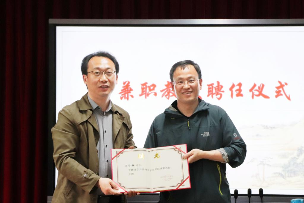 4月19日下午,我院在二楼大会议室为傅守祥老师举行了兼职教授聘任仪式,院长陈军教授为傅守祥老师颁发了聘书。仪式结束后,傅守祥老师为我院师生带来了题为《世界文学经典的英雄崇拜与理想品格》的学术讲座。讲座由蔡同庆老师主持。