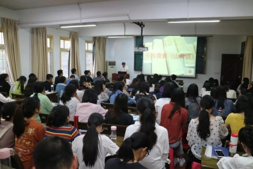 刘钊教授从王国维先生的名言“古来新学问起,大都由于新发现”入题,为同学们展示了近五十年来出土文献井喷式的成果。然后从《山海经》的文本性质、文本形式、史料价值、产生时地以及文本文字校释等五个方面进行了深入浅出、细致生动的讲解。