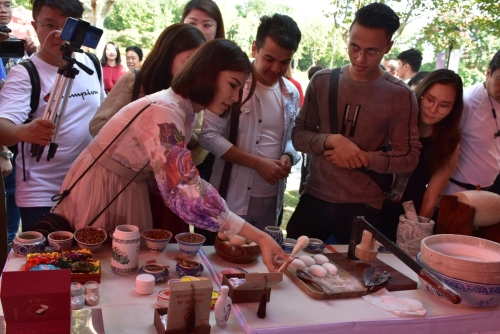 在运河文化嘉年华现场,留学生们参观了扬州特色非物质文化遗产谢馥春“香粉油”的制作技艺,并尝试涂用了谢馥春的香粉与马油。在观看制作香粉的古老技艺之后,留学生们也对中国的“匠人”精神有了更加深入的了解。
