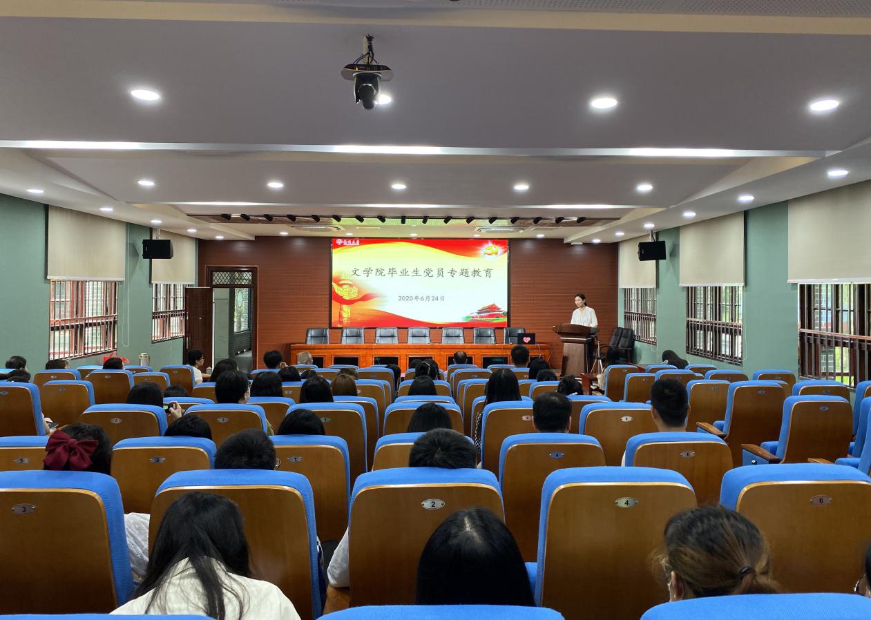 6月24日上午,在2020届毕业生集中返校期间,我院在文科楼中敏报告厅开展了以爱国主义教育、理想信念教育、党的纪律教育为内容的毕业生党员专题教育活动。活动由院党委副书记张茜主持。