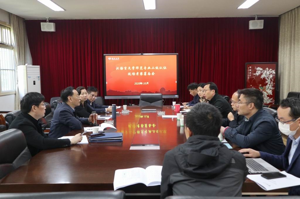 10月23日上午,我院召开师范专业认证现场考查筹备会。俞洪亮副校长率队来到我院,对汉语言文学专业自评工作进展和迎接专家进校考查工作进行专题调研。会上,俞洪亮副校长深入阐释了师范专业认证的理念、目标和意义,并对迎接专业认证的任务和实施工作提出指导意见。会议研讨了专业认证现场考查各项筹备工作,确定了工作时间表。评估中心郑刚主任、教务处俞福丽副处长和相关工作人员随同调研,全体院领导和专业认证工作小组参加了会议。