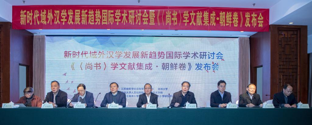 新时代域外汉学发展新趋势国际学术研讨会暨《学文献集成·朝鲜卷》发布会在扬州召开新时代域外汉学发展新趋势国际学术研讨会暨《< 尚书>学文献集成·朝鲜卷》发布会于2020年11月29日在扬州举行。开幕式由扬州大学副校长陈亚平教授主持,江苏省社科联党组书记刘德海、扬州大学党委书记姚冠新、扬州大学文学院钱宗武先后致辞,祝贺大会胜利召开。在开幕式后,清华大学教授廖名春、西南大学教授孟蓬生、韩国大田大学教授金钟赫、南京大学教授童岭进行了域外汉学研究新趋势的主旨报告。